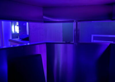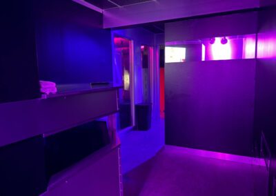 I biografens mittpunkt hittar du vår sugbar, perfekt för dig som vill ge eller få en härlig avsugning helt anonymt, utan att behöva visa ditt ansikte för personen på andra sidan. En sugbar är inte som ett vanligt gloryhole i väggen, då den är uppbyggd som ett stort hörnbord, med en lång rektangulär öppning istället för mindre runda hål. Den som vill bli avsugen står på utsidan av baren, medan den som vill suga av kryper in genom öppningen på andra sidan väggen, sätter knäna på de mjuka kuddarna och påbörjar en njutningsfull upplevelse, helt anonymt! Sugbaren är så pass stor att flera samtidigt kan njuta av att ge och få härliga avsugningar. Ovanför baren sitter en tv-skärm där det går att välja bland massvis av porrfilmer att titta på under tiden man njuter.